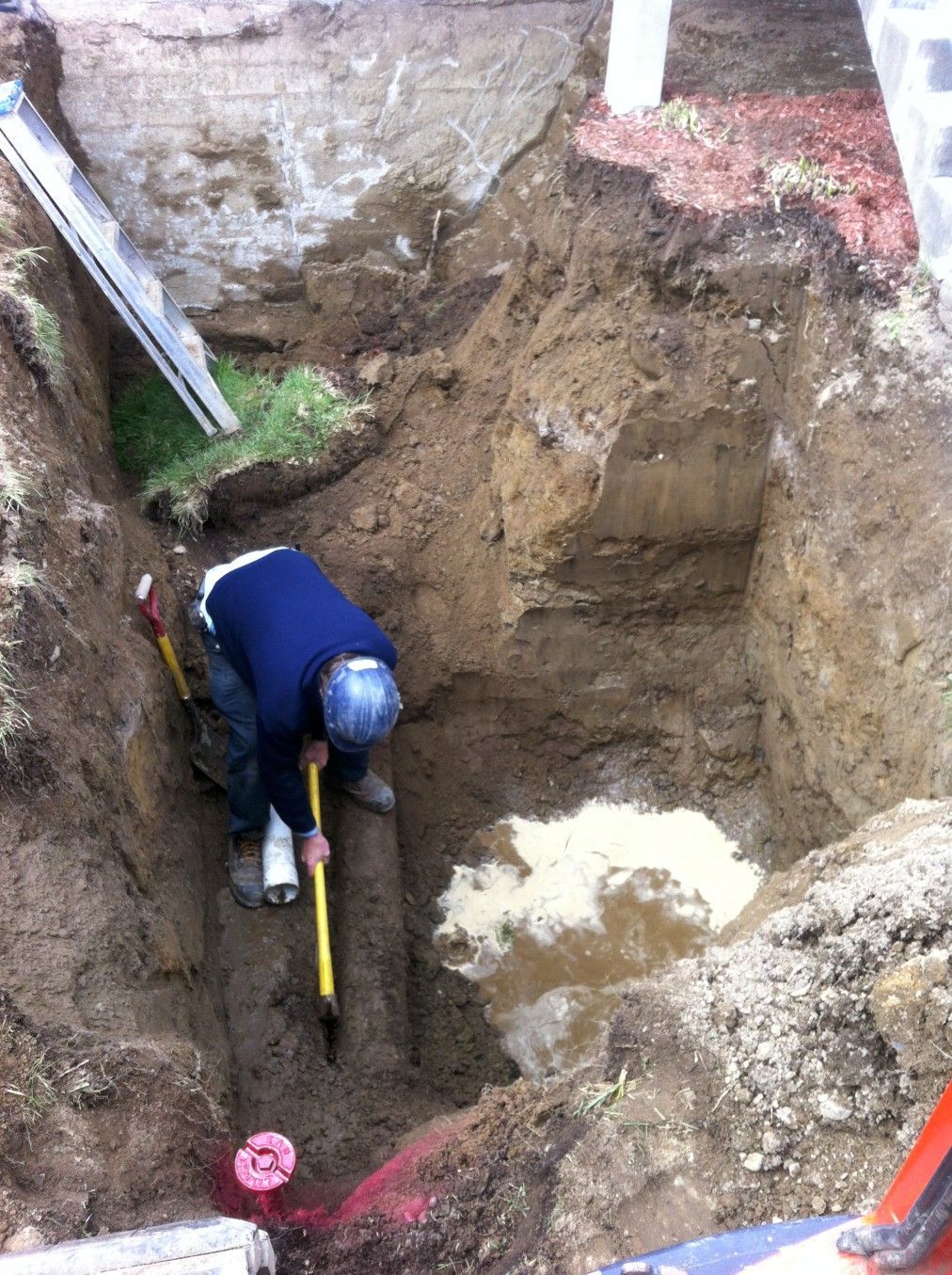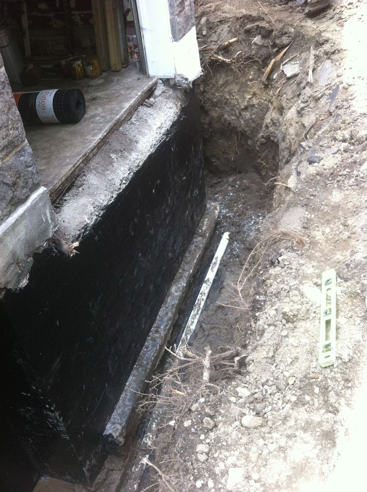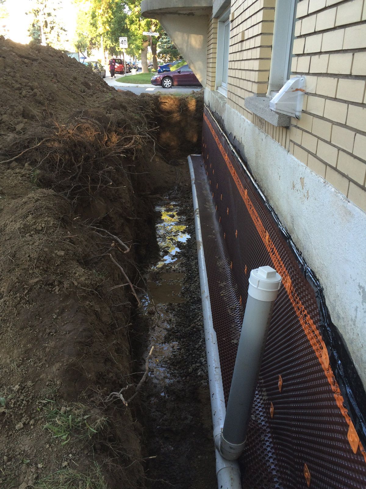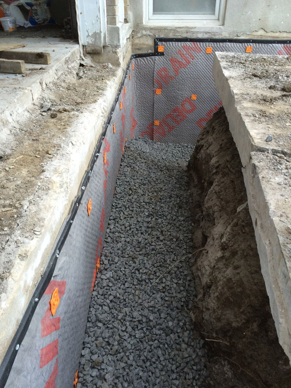Changement drain français et imperméabiliser bloc de béton